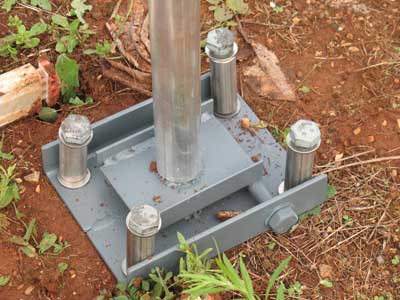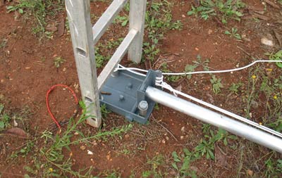 |   | Dank Kippgelenk, welches mit 45cm Erdnägeln und Abstandshülsen im Boden gesichert wurde,