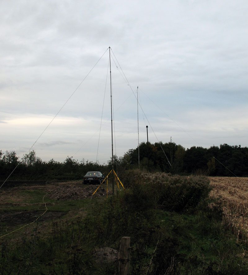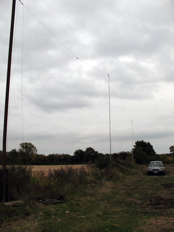 |   | Antennenaufbau mit 3 Masten, in der Mitte der 40m Dipol |
