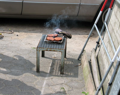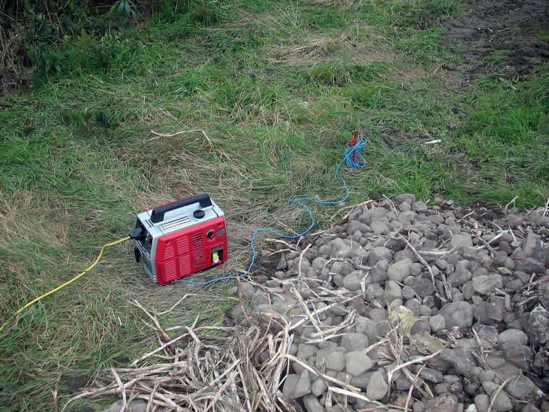 |   | 50m weit entfernt stand das "Kraftwerk", ein Honda 500W 4-Takt-Jockel, der in 16h gerade mal 8L Benzin verbraucht hat.