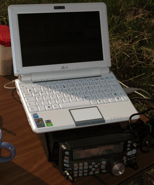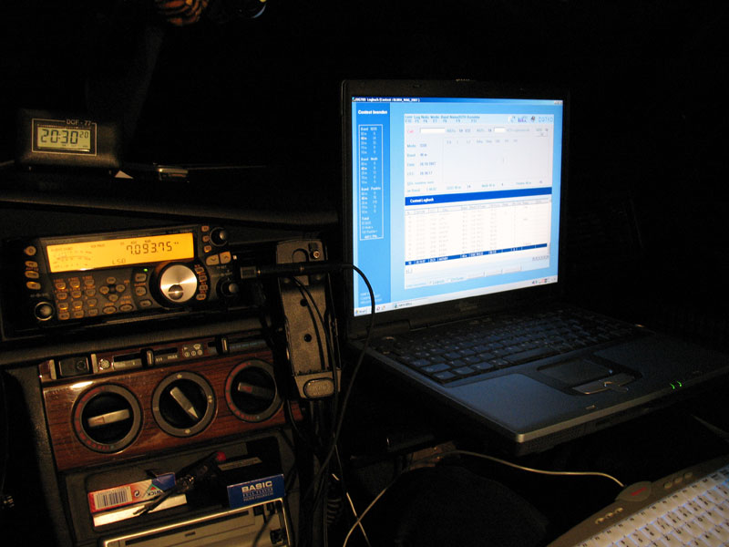 Zum Einsatz kamen: Kenwood TS-480SAT mit 100W, Antenne W3DZZ und 40m Inverted-V Dipol und als Mobil QTH ein 190er MB.