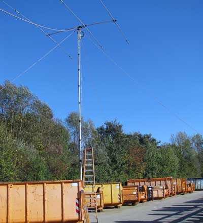Dank vorhandener Lichtmasten (12m)  und 15m Kurbelmast war der Aufbau der 3 Dipole schnell