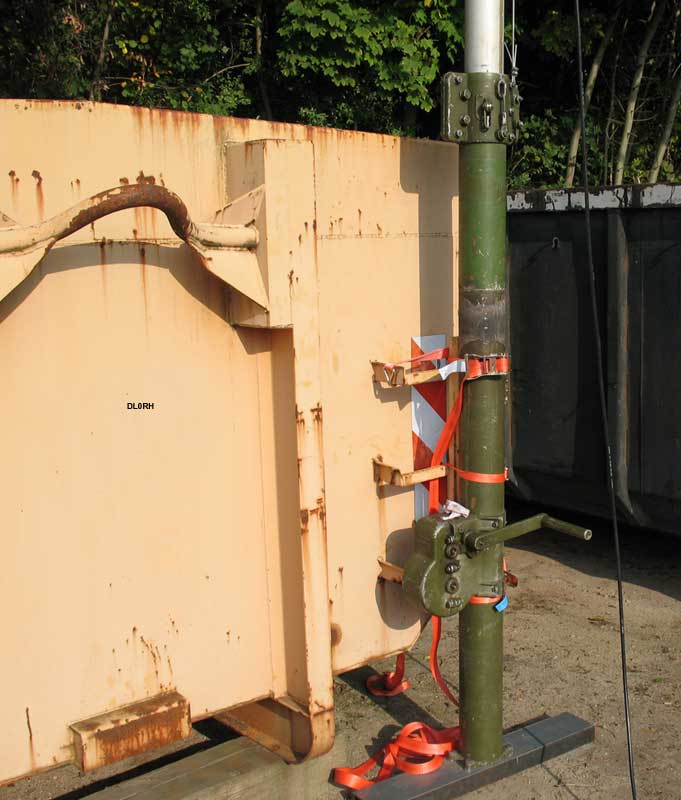 |  | Wie immer, Kurbelmast am Container mit Spanngurten befestigt |