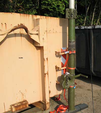 |   | 15m Kurbelmast für die W3-2000 am Container befestigt |