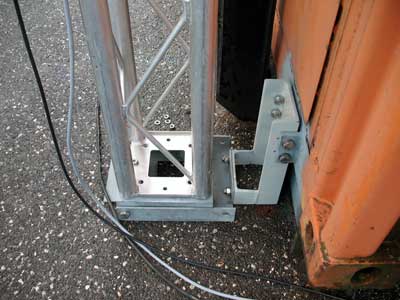 |   | Ansicht der Kippvorrichtung vom Gittermast, der mal eine Festbühne war :) Nächstes Jahr kommt wohl ein 2m Segment dazu...