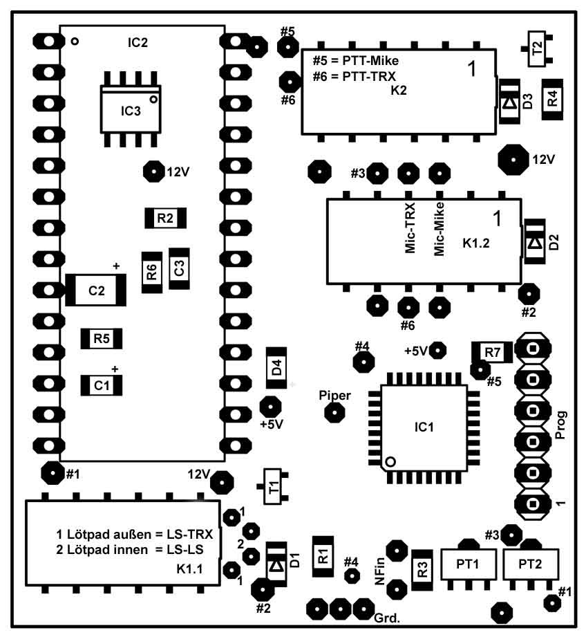 Da die Schaltung in den TRX eingebaut werden soll, müssen am TRX 2 kleine