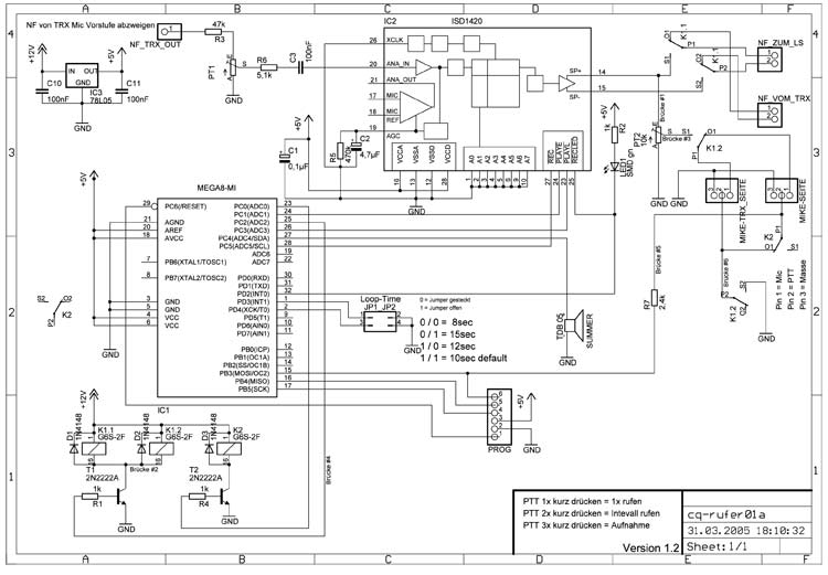 Kernstück der Schaltung ist der AMTEL µC ATMega8 und das Sound IC ISD 2560, welches 60 Sekunden
