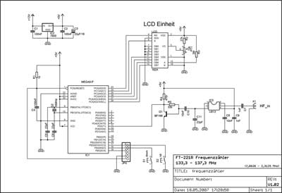 Die Schaltung besteht aus einem ATMega8 Mikrocontroller, einem Frequenzteiler U813