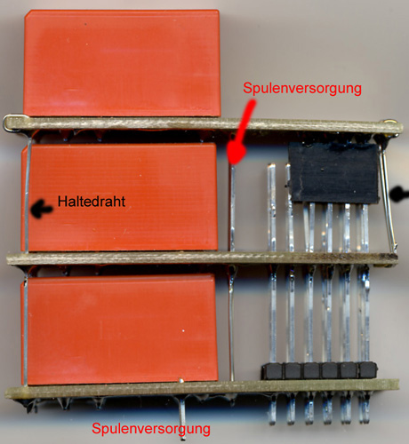 Nun noch die Spulen mit Kupferdraht verbinden.