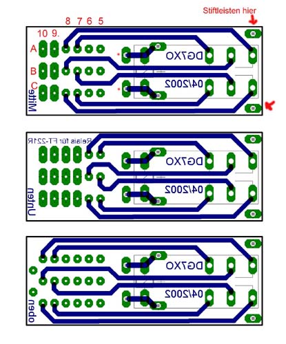 - 3 Platinen 55x21mm (nach dem ätzen zuschneiden)