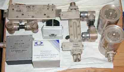 |   | Hier die Teile, die mal ein 2m/10m Tranverter werden sollen. Zusehen sind Oberwellenfilter, Zirkulator, N-Stecker und Messwerke.